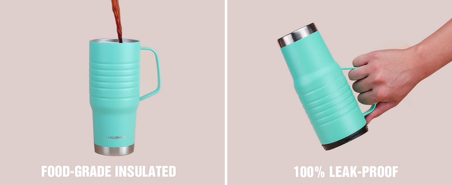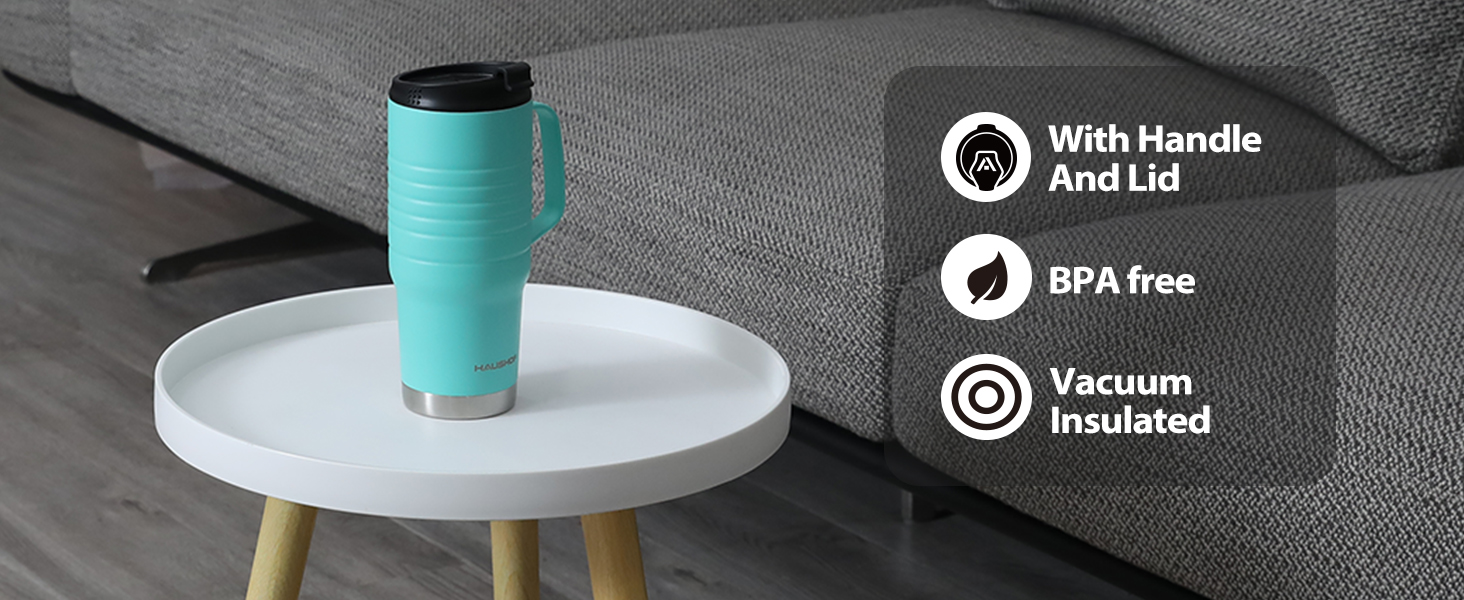 HAUSHOF 24 oz Travel Mug with Handle&Leakproof Lid Stainless Steel Lake Blue NEW