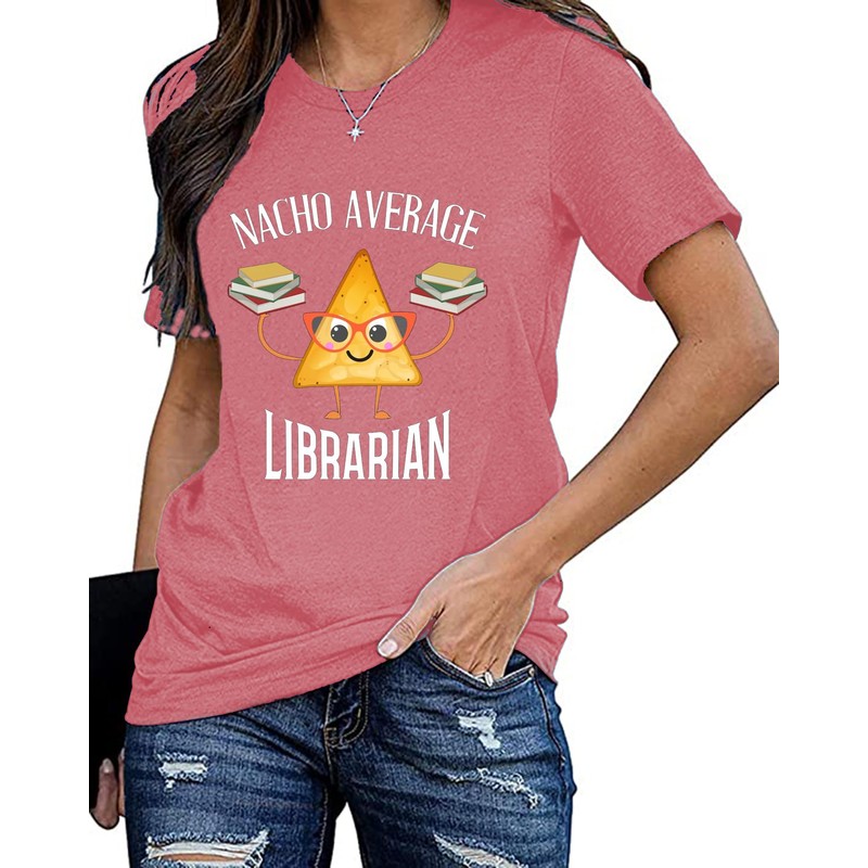 "Nacho Average Librarian "Shirt for Women is a nice casual T-Shirt to wear with jeans, shorts or leggings. The T-shirt is well made, has simple graphics, appropriate for book lovers and teacher,Librarian.