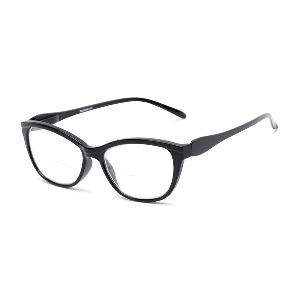 Readers.com Reading Glasses: The Ambrosia Bifocal Reader, Plastic Cat Eye Style for Women - Black, 2.75