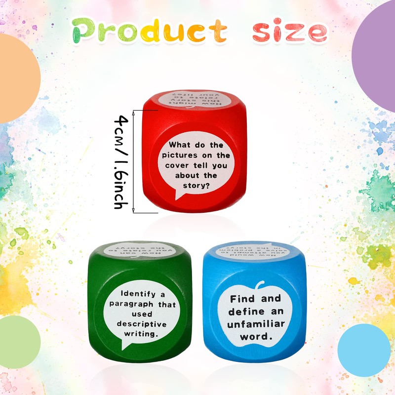 Reading Comprehension Cubes 3 Colored Language Reading Manipulatives Learning Cube Question Dice Tools for Elementary School Classroom Kids Teacher Teaching Supplies (24 Pieces)
