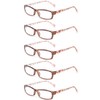 Reading Glasses 5 Pairs Fashion Ladies Readers Spring Hinge with Pattern Print Eyeglasses for Women (5 Pack Brown, 2)