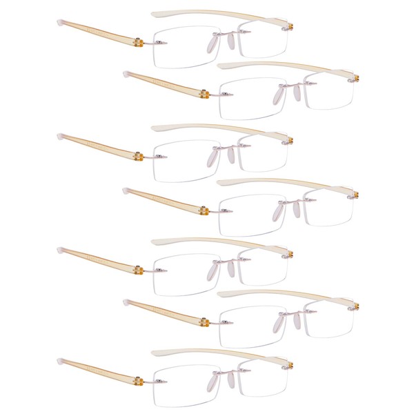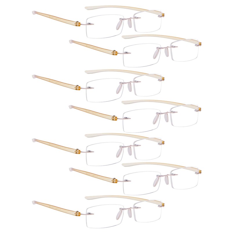 LUR READING GLASSES 7 pack Small Lens Rimless Readers (Yellow Arm)