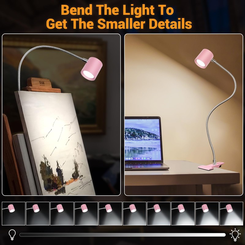- đź’ˇ 3 Colors Dimmable Clamp Light - Clip on lamp has 3 color, 3000K, 4500K, 6500K. Each mode has 10 levels of brightness adjustable, whether day or night, will meet all your lighting requirements, perfect for reading, working, learning.