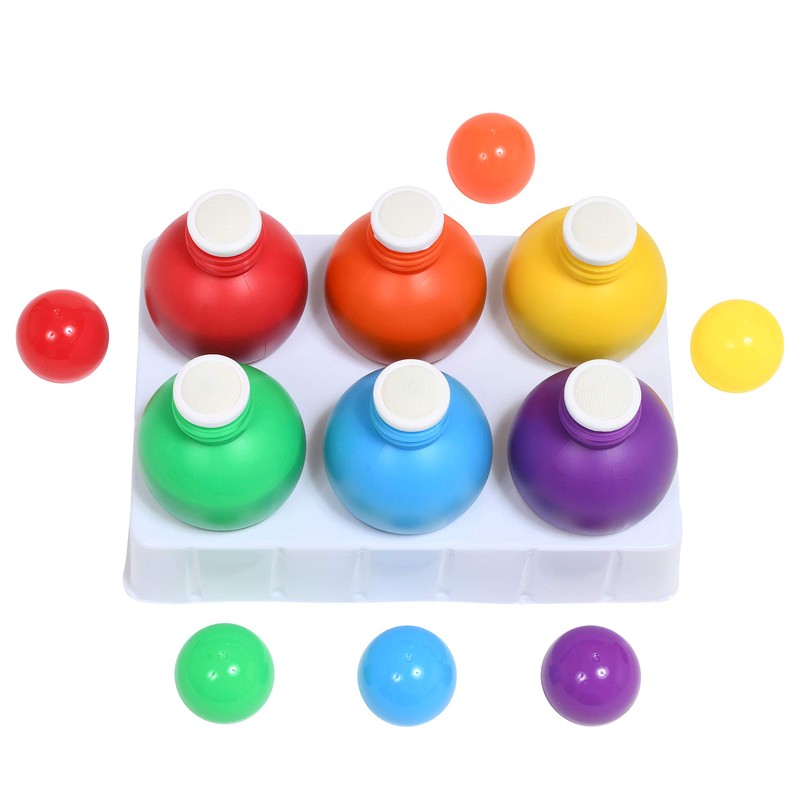 - 6 MARKERS IN DIFFERENT COLORS This kid's art set features 6 dot markers with different, fun ink colors. Kids can paint, create, dab and dot with red, orange, blue, green and purple.