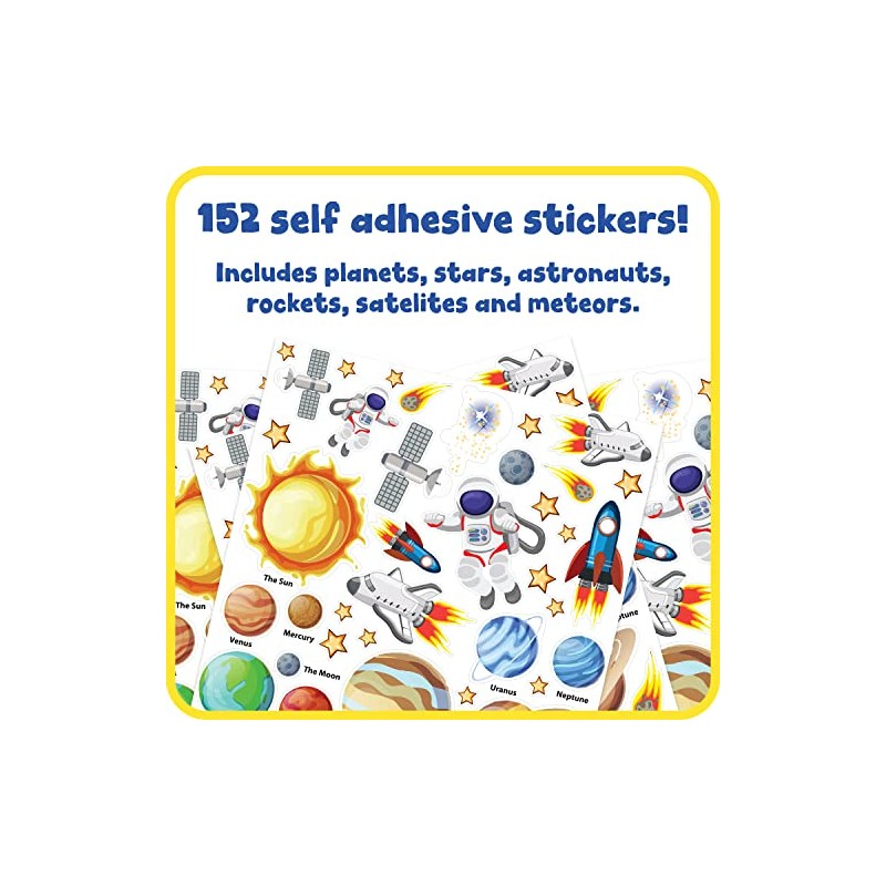 - 152 SPACE STICKERS -- This space-themed sticker pack includes 4 foam sheets, each with 38 punch-out stickers in 17 different images. Decorate with planets, stars, rockets and more!
