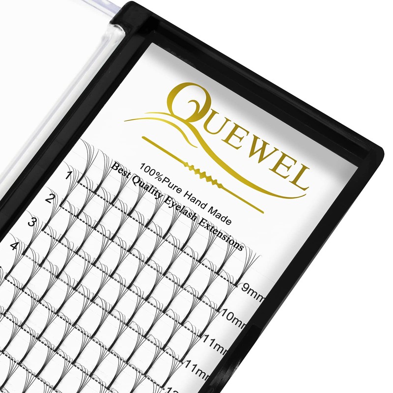 - Stable curve: QUEWEL eyelashes have improved the quality of eyelash fans for eyelash extension, thanks to the special treatment of the pre-fanned eyelashes, the curvature of the eyelash fans can be made more durable.
