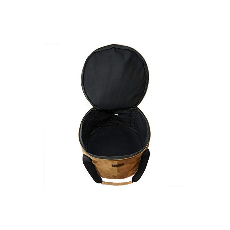 Size:14  |  Color:Tan This Dutch Oven Cover by Readywares is constructed using a high quality 20oz waxed canvas that provides added protection against liquids​ while giving the bag a timeless look. We use strong and smooth zippers and sturdy handles, this base​ will feel great in your hands. Useful as a carrying case for your dutch oven, whether for camping or a backyard cook out. This case makes storage easy, clean and is a good way to keep your dutch oven safe. As with all our products, we stand by what we make and guarantee this bag against defect.