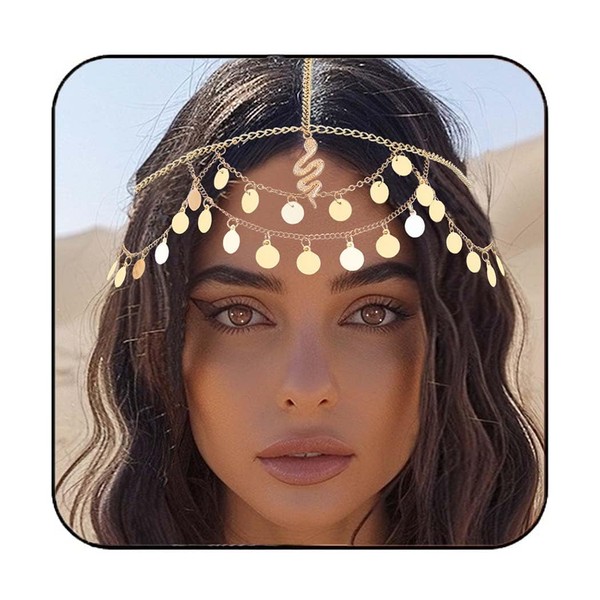 Reaky Gold Sequin Head Chain Snake Hair Chain Egyptian Headpiece for Women
