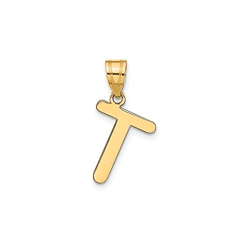 Real and Solid 14K Yellow Gold Polished Bubble Letter T Initial Pendant