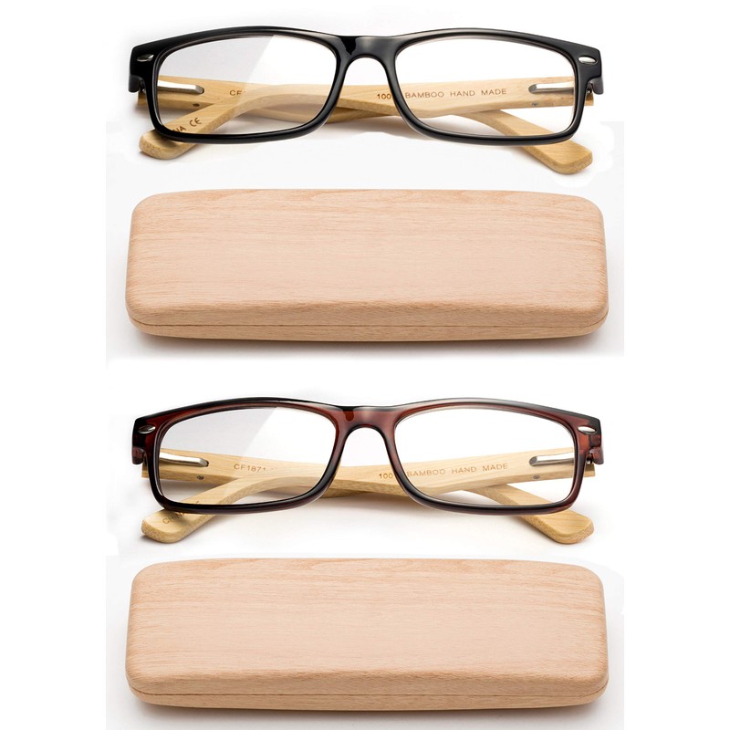 Real Bamboo Reading Glasses Spring Hinge Genuine Bamboo Rectangular Reader w/Case