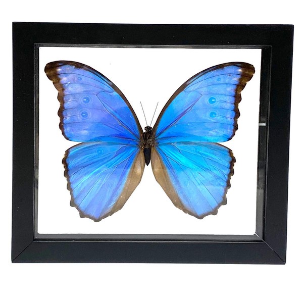 - REAL BUTTERFLY MORPHO DIDIUS INSECT TAXIDERMY FRAME WITH DOUBLE SIDE GLASS FRONT