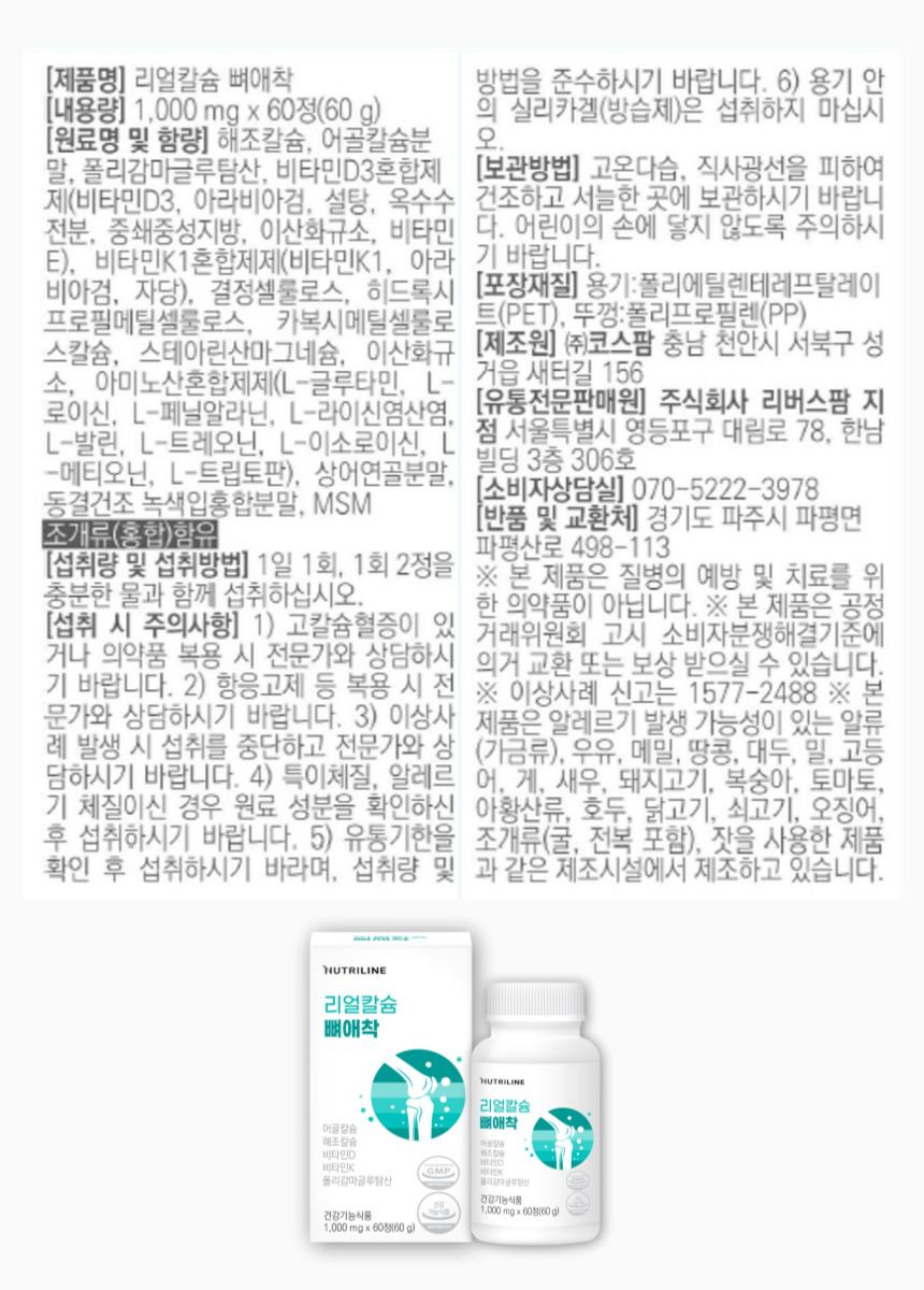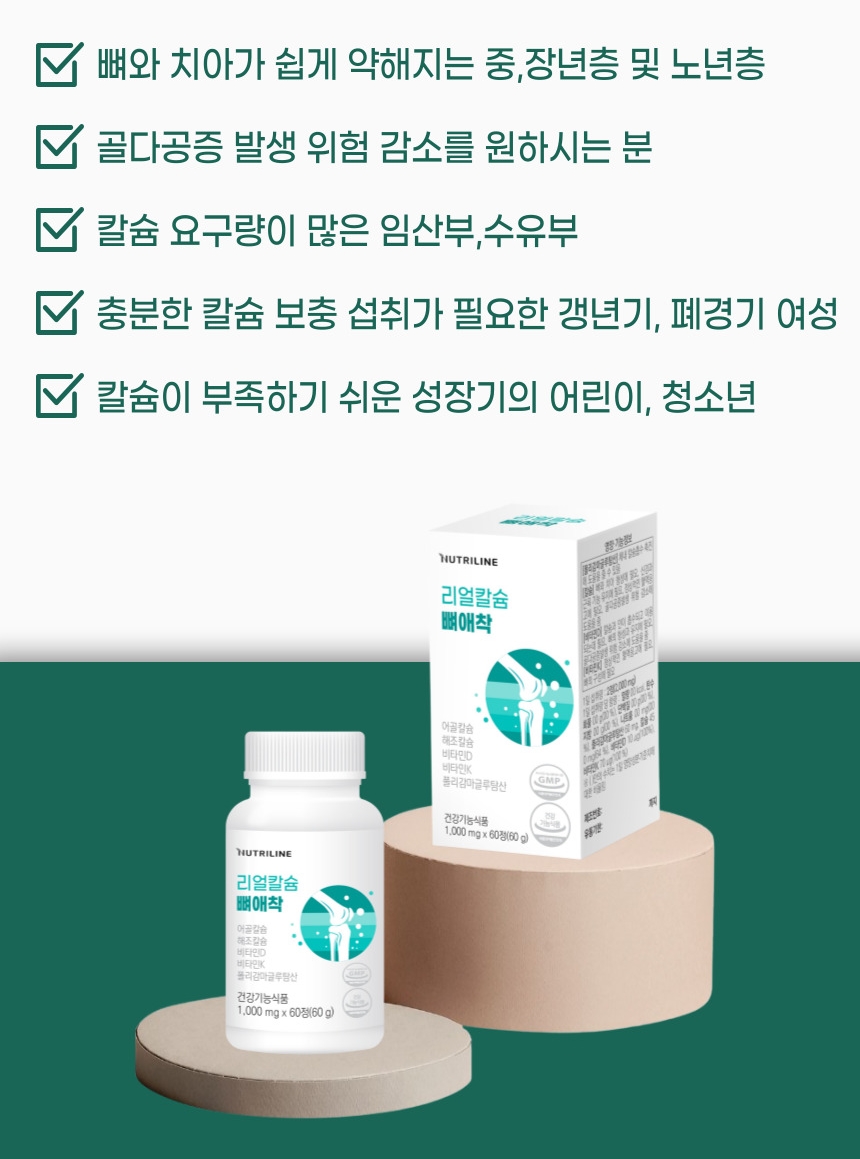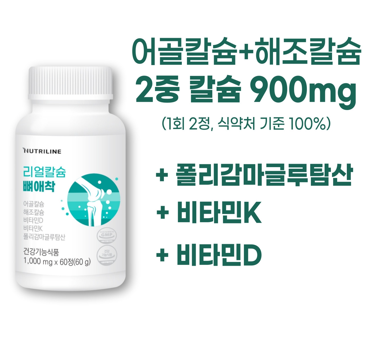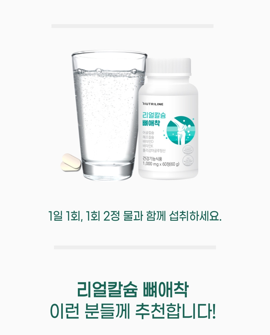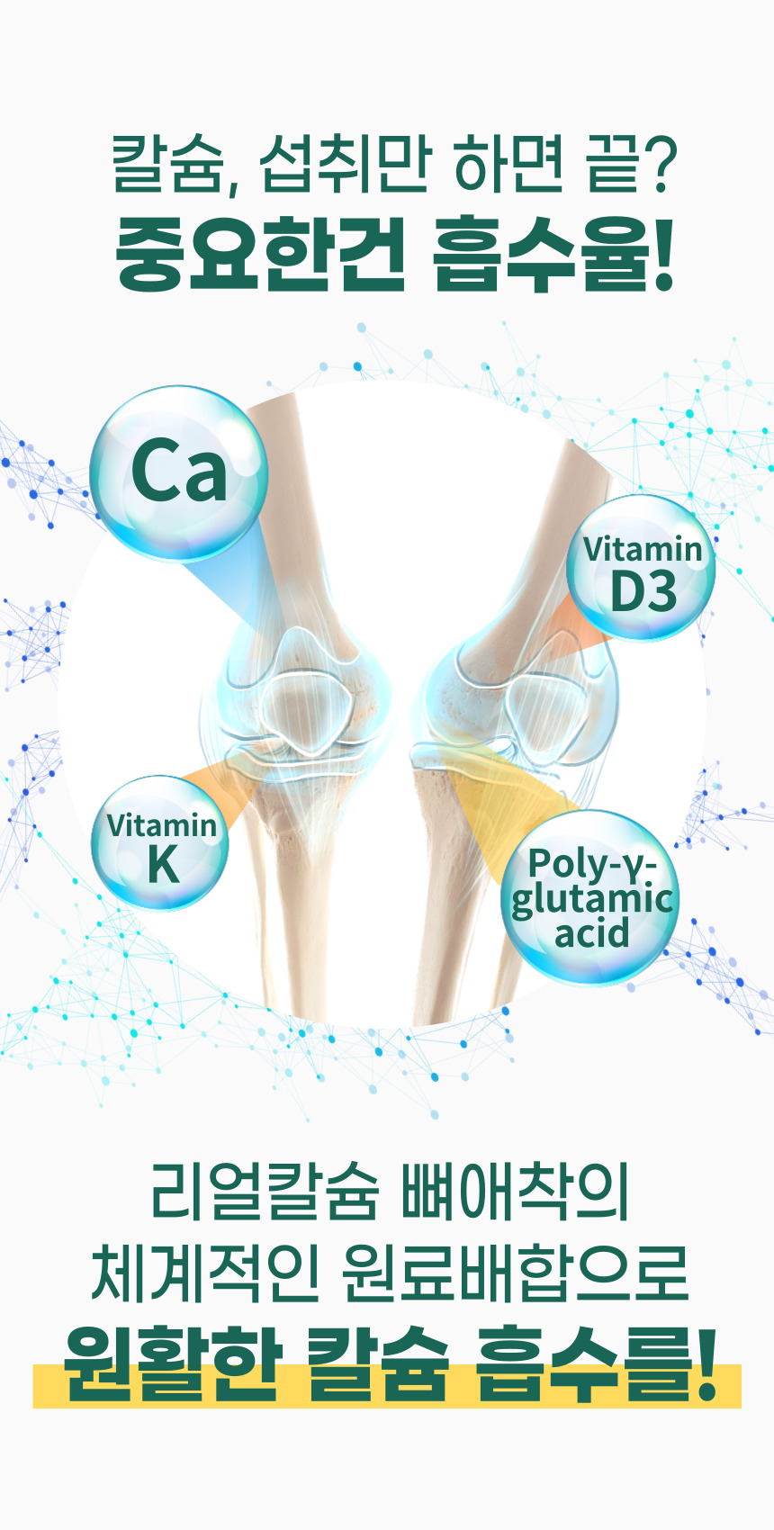 Real calcium bone attachment (1 month supply) Vitamin D Vitamin K Calcium absorption Fish bone calcium Bone health Osteoporosis Gums / 리얼칼슘 뼈애착 (1개월분) 비타민D 비타민K 칼슘흡수 어골칼슘 뼈건강 골다공증 잇몸