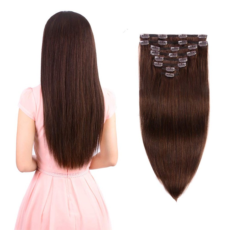 - 【MEDIUM BROWN】Straight Clip in hair extensions #4 is the medium brown color, If you could not ensure which color to match your hair, you can email pic to us, we will reply you a best advice within 12hours on business.