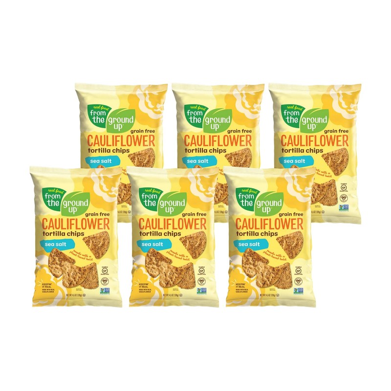 REAL FOOD FROM THE GROUND UP Cauliflower Tortilla Chips - 6Count, 4.5 Oz Bags (Salted)