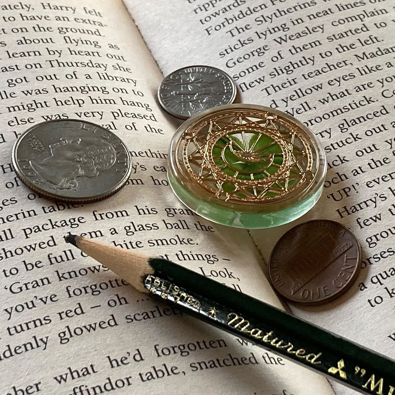 Real Four Leaf Clover Good Luck Pocket Token, Preserved, 1.25”, Including Metal Ornament (Magic Circle of The Moon)