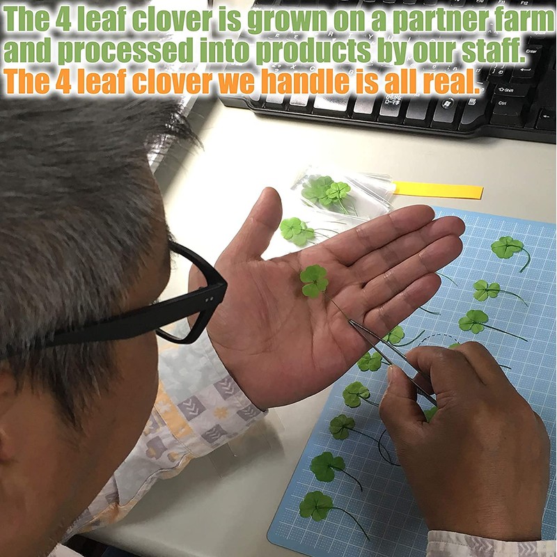Real Four Leaf Clover Good Luck Pocket Token, Preserved, 3.2 cm, Including Metal Ornament (Magic Circle of The Star)