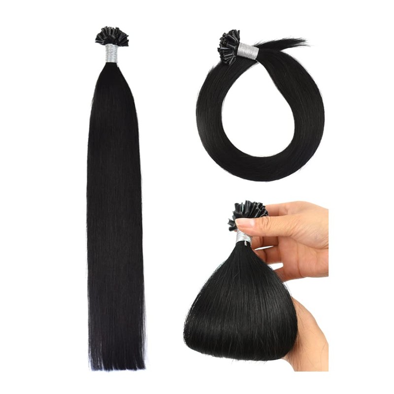 Real Hair Bondings U-Tip Hair Extensions Real Hair Keratin Bondings Real Hair 35 cm Remy Real Hair Extensions Bondings (50 g #1 Black)