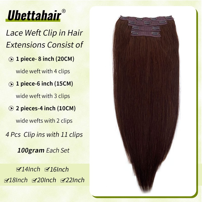 • 【Remy Human Hair Extensions Clip ins】-- Ubetta hair extensions are made of 100% 9A real human hair, soft, natural, straight texture clip-in hair , tangle- free throughout its lifetime, easy to wash and manage, can be dyed, permed, curled and restyled to any styles you preferred.