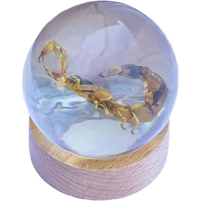- Globe of brown scorpion with wooden base made of high-quality resin, environmentally friendly, sturdy, and durable, but also good materials can increase product life