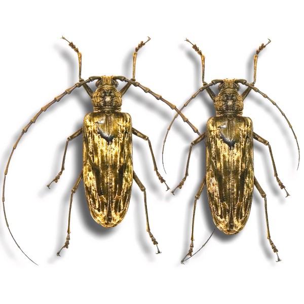REAL JUMBO Golden Volcano PAIR Beetle Neocerambyx gigas +75mm Unmounted in USA