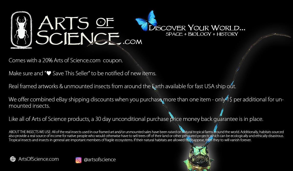 The Golden Satin Long Horn or Volcano Beetle is a newly studied beetle capable of regulating its body temperatureSave and collect... Multiple items from Arts of Science = one lower shipping fee. Condition is New. Ready to ship - Located in the USA fast ship out.