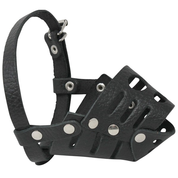 This size is particularly suited for small to medium dogs. Circumference should be measured below the eyeline. The length should be measured from the tip of the nose to the eyeline. Well-fitting, comfortable muzzle is made of high quality genuine leather, riveted for extra strength. Ideal solution for grooming, off-leash walks. Light, durable, comfortable, and safe. Allow for panting, dog will not have hard time breathing. Please, measure your dog's snout before you place the order to ensure this is the correct muzzle size you need.