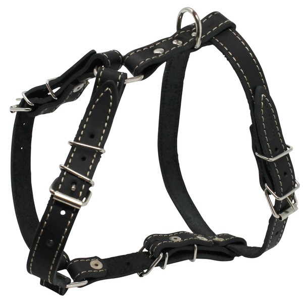 Real Leather Dog Walking Harness Medium Black, 21" - 26" Chest