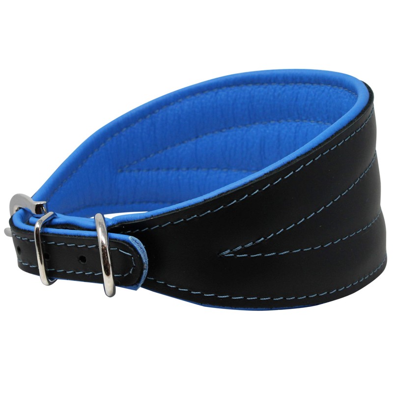 Real Leather Extra Wide Padded Tapered Dog Collar Glossy Black Greyhound Saluki Deerhound Lurcher Whippet Dachshund (11"-13" Neck; 2" Wide, Blue)