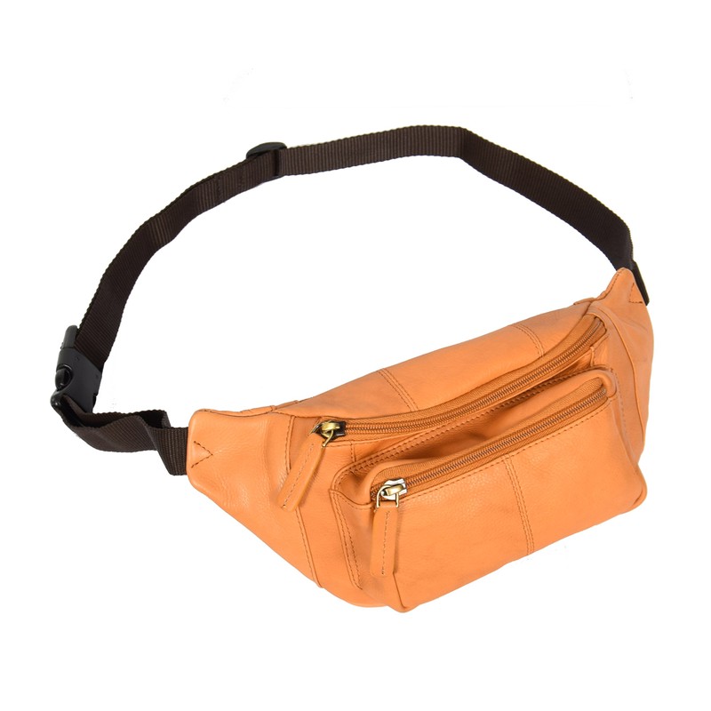 Real Leather Waist Bum Bag Slim Travel Money Pouch Pack Barcelona (Sand)