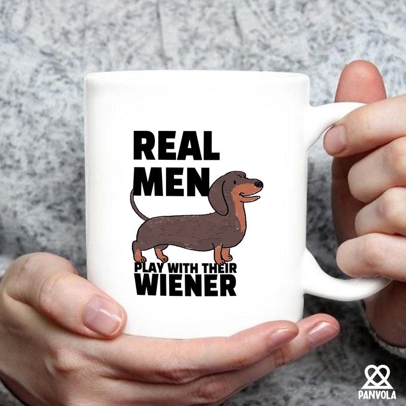- Ultimate Gift Mug that Stands Out from the Rest: Serve up laughs with the Real Men Play with Their Wiener mug. Perfect for proud dachshund dads and dog enthusiasts, this playful design is all about celebrating the love for your favorite wiener.