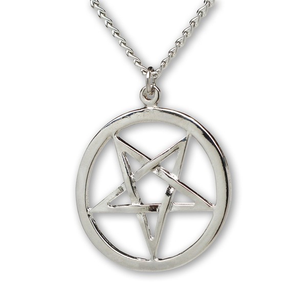 Real Metal Inverted Pentacle Pentagram Satanic Polished Silver Finish Pendant Necklace
