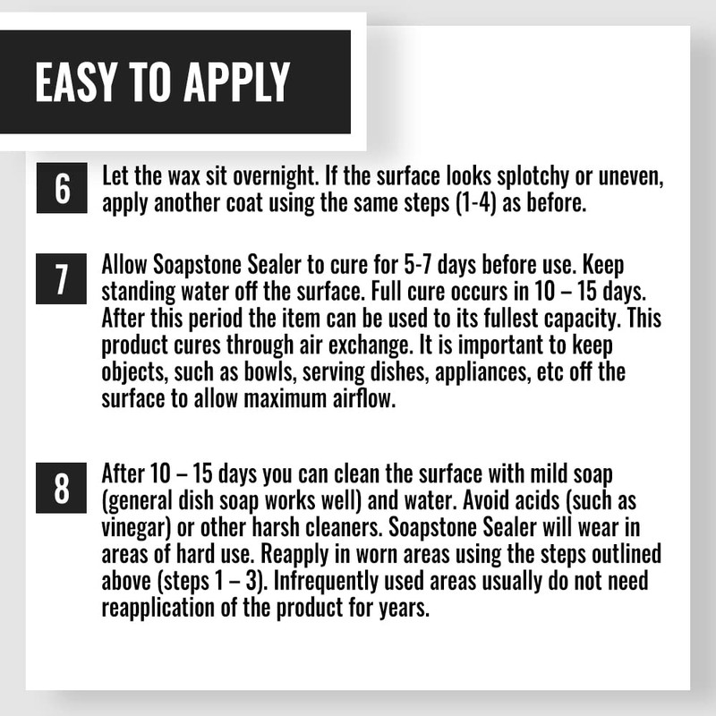 - VEGAN FRIENDLY - Soapstone Sealer is vegan friendly and made from plant based ingredients with no solvents, VOCs, or added fragrances.