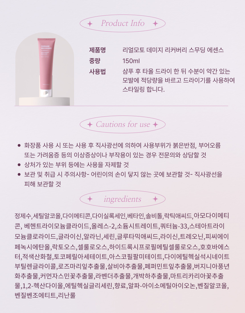 Real Moto Damage Recovery Smoothing Essence 150ml / 리얼모토 데미지 리커버리 스무딩 에센스 150ml