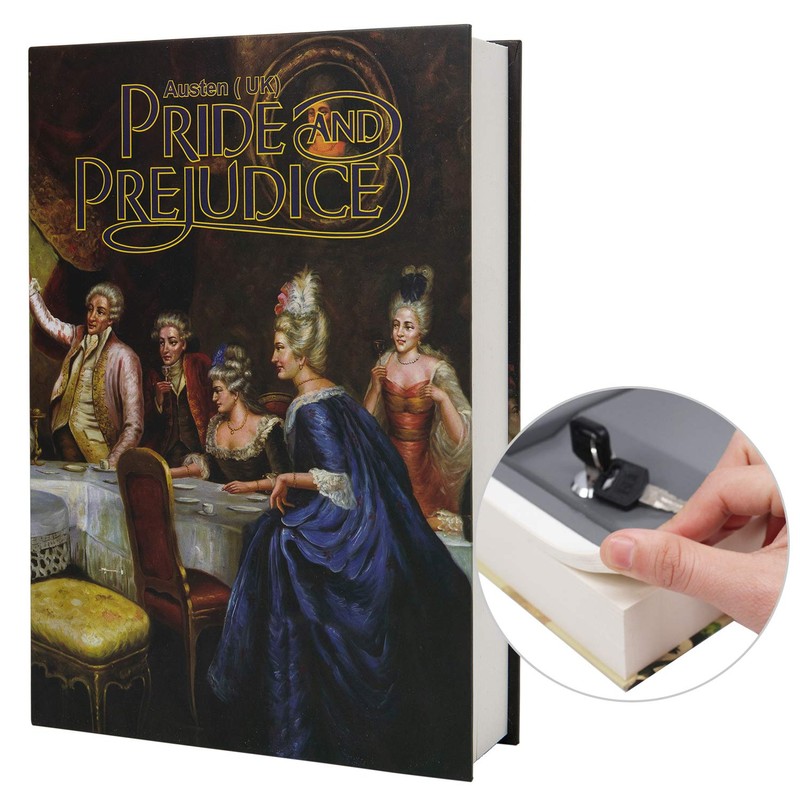 Real Paper Diversion Book Safe Storage Box, Dictionary Secret Safe with Code Lock/Key, flip Book Hidden Safe (M Key, Pride and Prejudice)