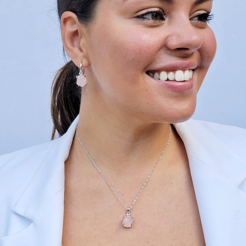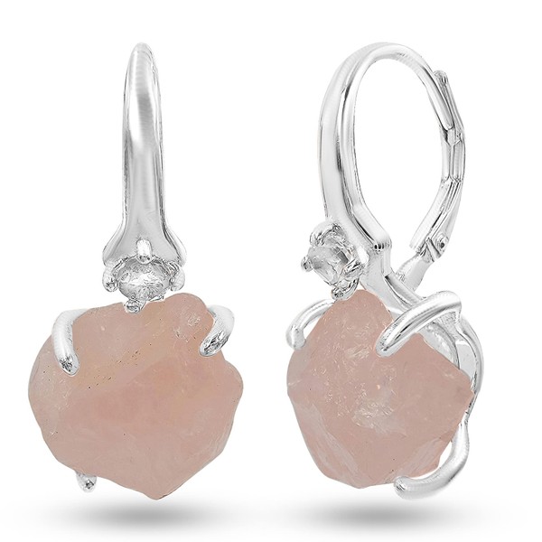 Real Raw Rose Quartz Crystal Drop Earrings Real Gold Birthstone gift for her Anniversary Christmas Mothers day Birthday Gift, Uniquelan Jewelry (rose-quartz, white-gold)