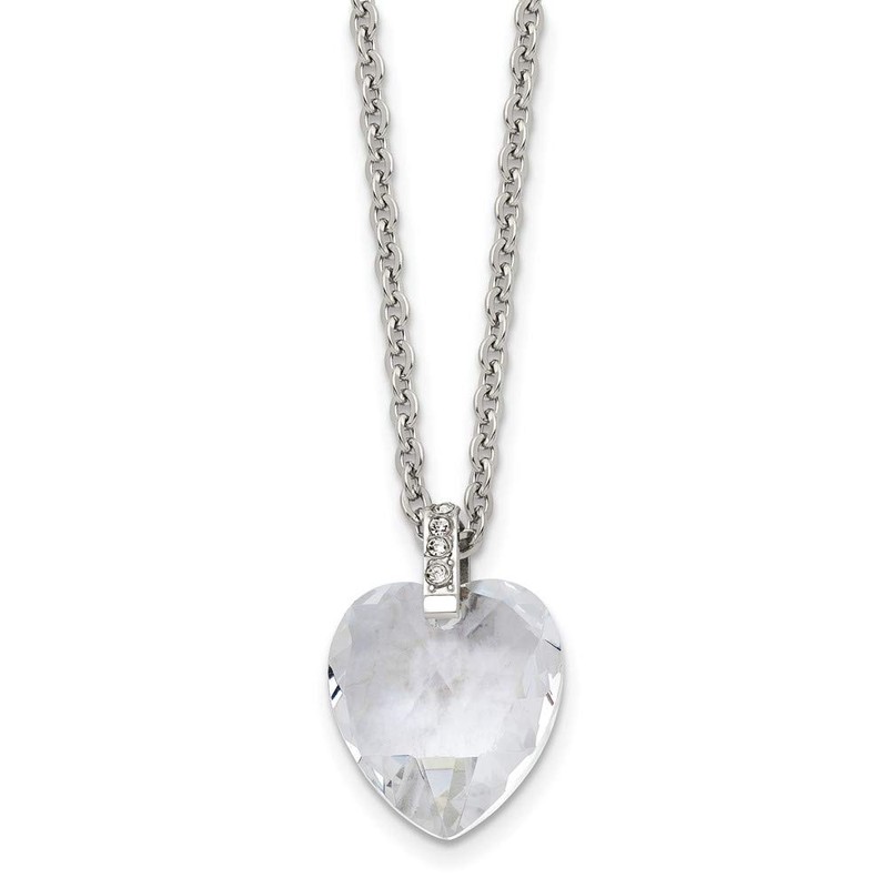 Real Stainless Steel Crystal Heart and CZ Cubic Zirconia 18in Pendant Necklace Charm Chain - with Secure Lobster Lock Clasp 18"