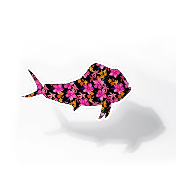 Mahi fish sticker with Hawaiian Flower custom design by Real Sticky.