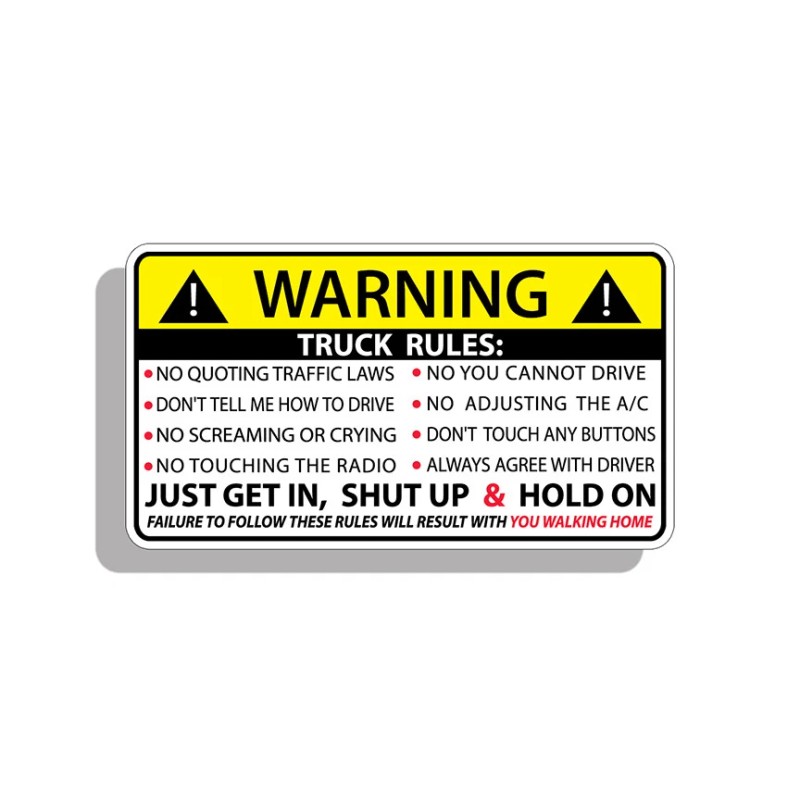 Real Sticky Truck Safety Warning Rules Sticker Funny Caution Vinyl Visor Window Bumper Decal
