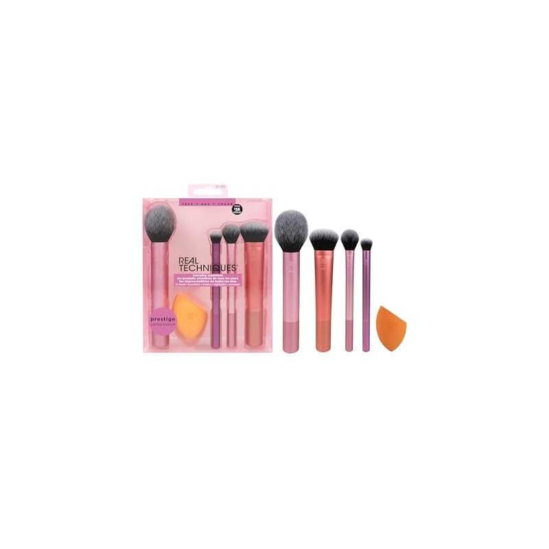 Real Techniques Real Techniques 5 Piece Everyday Essentials Makeup Brush Set, Includes 4 Brushes & Makeup Sponge, For Foundation, Blush, Bronzer, Contour, Eyeshadow, & Powder, Travel Gift Set, Cruelty-Free & Vegan