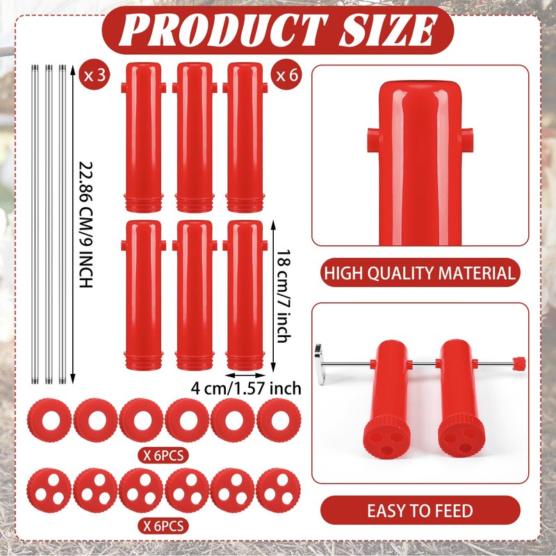 - Comprehensive Package Content: with this purchase, you will receive 3 complete chicken treat dispenser set which includes 6 tubes, 6 lids with 3 holes, 6 lids with 1 hole, 3 rods 9 inch, end caps, and hardware (food not included); This comprehensive set allows you to be fully equipped for your poultry needs