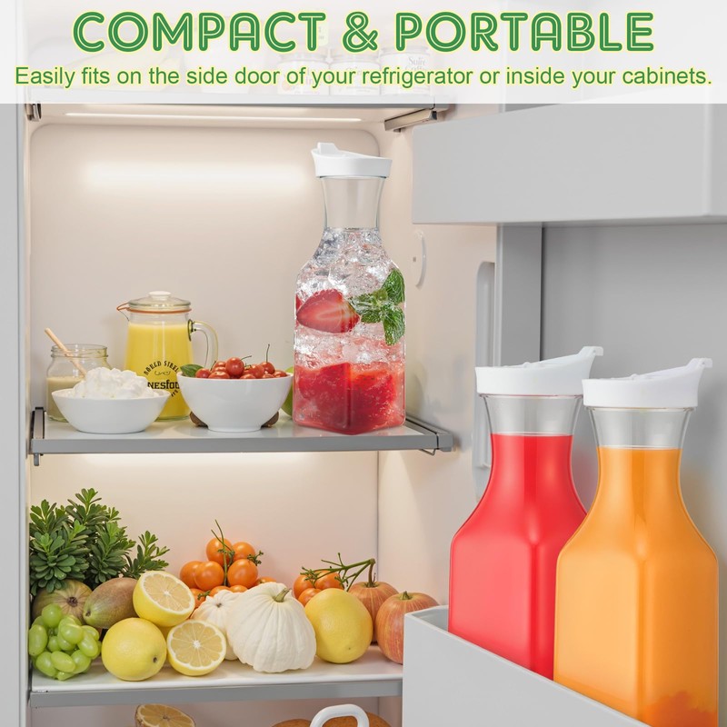 - Optimal Size: at a size of 34oz, our plastic carafe pitchers are ideal for providing an adequate serving of your delicious juices; Their dimensions ( 25.8 x 10 x 6.5cm) make them conveniently compact for easy handling and storage