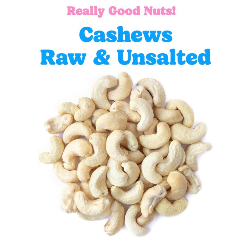 Really Good Nuts! - Organic Raw Cashews, 2.2 lb (35.2 oz), Kosher, Gluten-Free, Non-GMO, Vegan, Whole Nuts, Unsalted, Unroasted, Source of Protein & Iron, Nutritious, Crunchy, Healthy Snacks, For Baking & Cooking