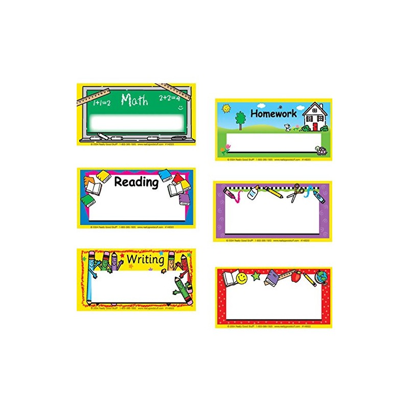 - 180 self-stick folder labels (30 each of Math, Reading,Writing, Homework plus 60 blanks)