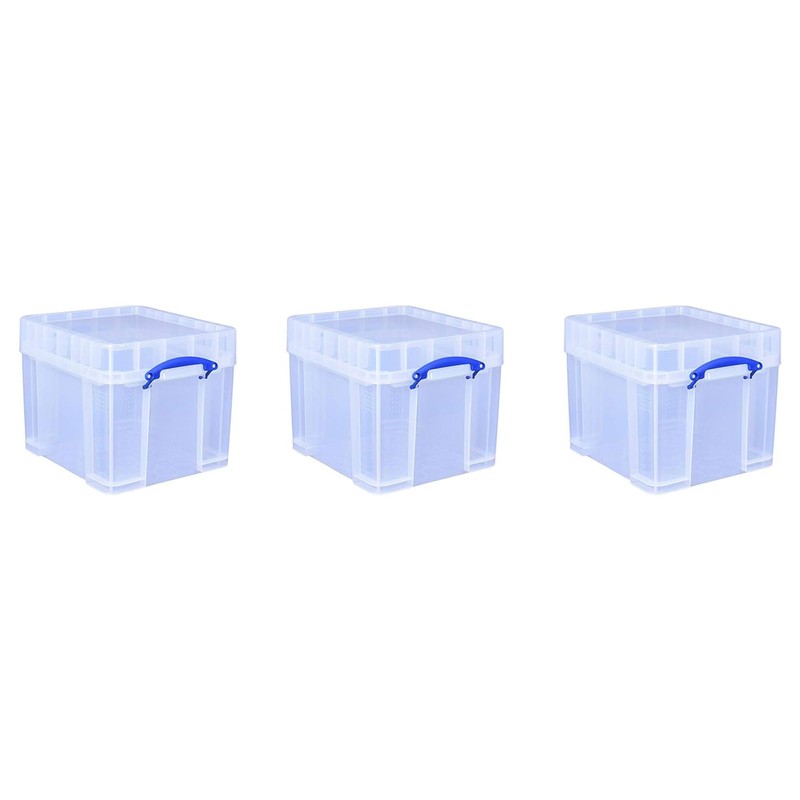 Really Useful Box 35 Liter Plastic Stackable Storage Container with XL Snap Lid & Built-In Clip Lock Handles for Home or Office Organization, 3 Pack