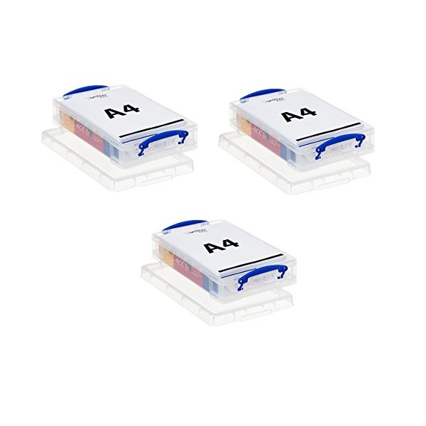 Really Useful Box(R) Plastic Storage Box, 4 Liters, 14 5/8in. x 10 1/4in. x 3 3/8in, Clear (3 pack)