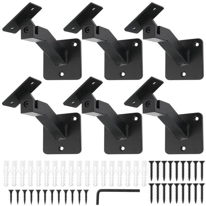 RealPlus 6pcs Swivel Handrail Brackets Heavy Duty Steel Hand Rail Brackets for Staircase Stair Railing, Black