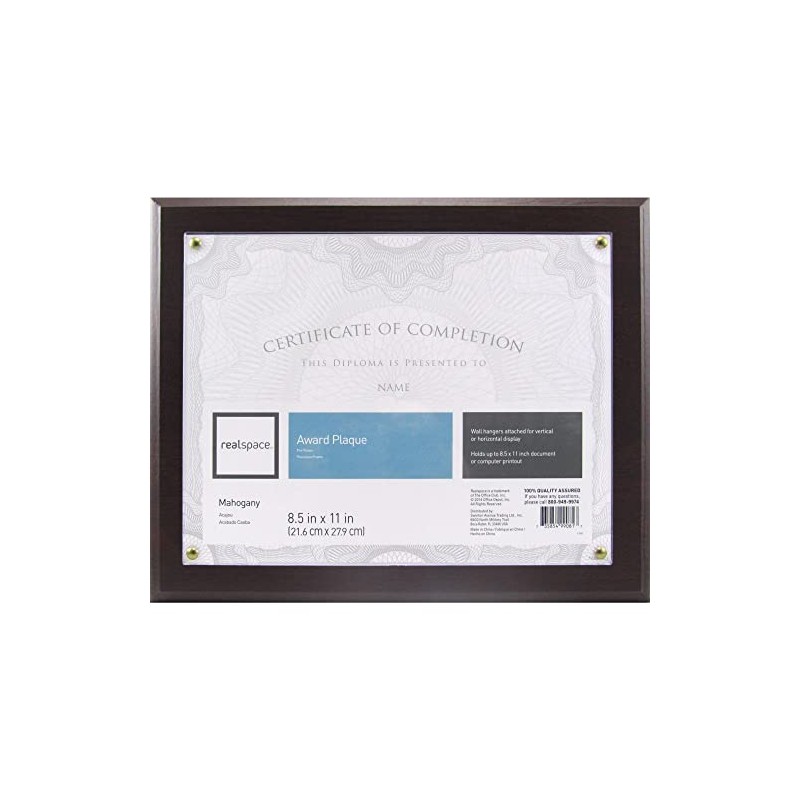 Realspace™ Award Plaque, 8-1/2" x 11", Mahogany