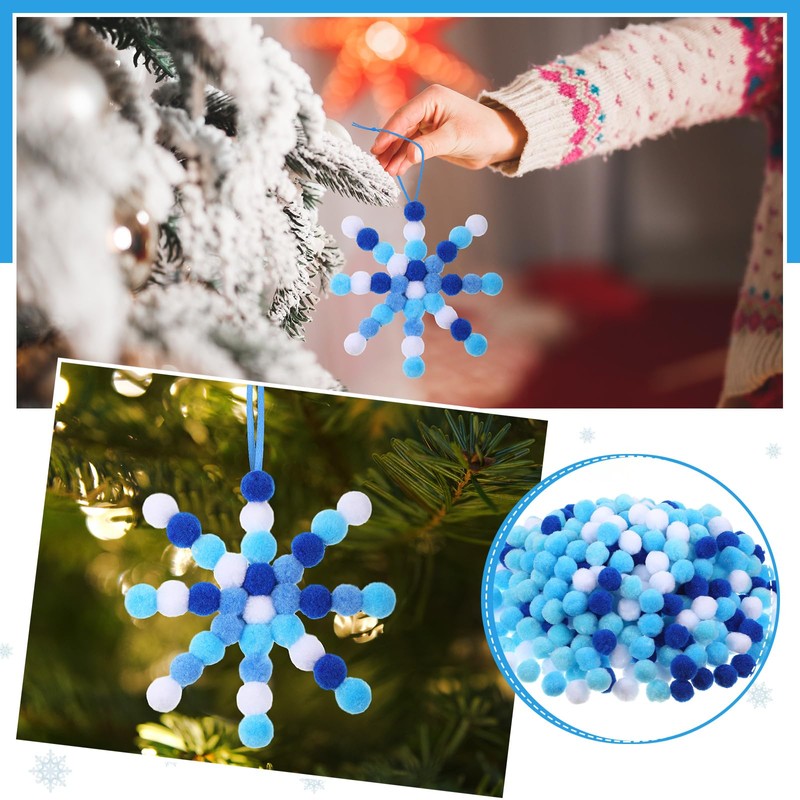 - DIY Christmas Fun: everyone loves decorating snowflake with fluffy pom-poms! Just paste the different blue and white pom-poms onto the snowflake cutout pieces; Mix and match as you like, and let your creativity shine