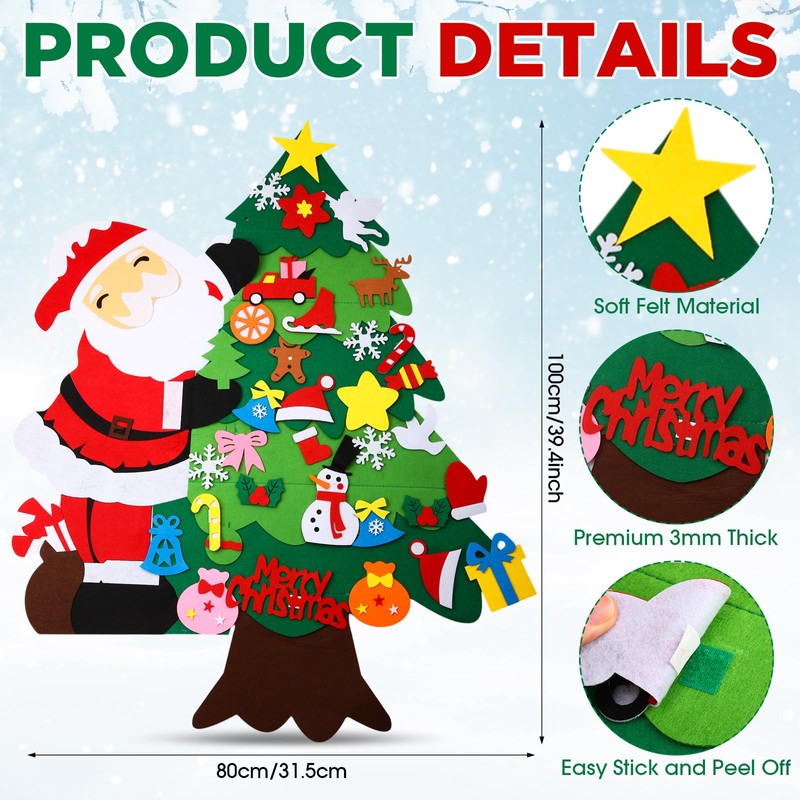 Designed as a wall hanging decoration, this felt tree can be easily mounted in various locations. It's an ideal choice for homes, classrooms, or community centers, spreading festive cheer everywhere.