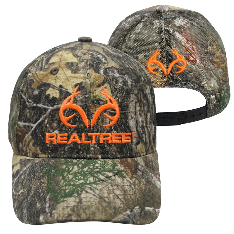 - You are sure to receive compliments wearing this classy eye-catching Realtree Edge Logo trucker hat cap. Enjoy the coolness of mesh back while still wearing all-over Realtree Edge Camo Mesh back and front Realtree Edge Camo cotton polyester Canvas. One Size Adults S-L. Adjustable plastic snapback.